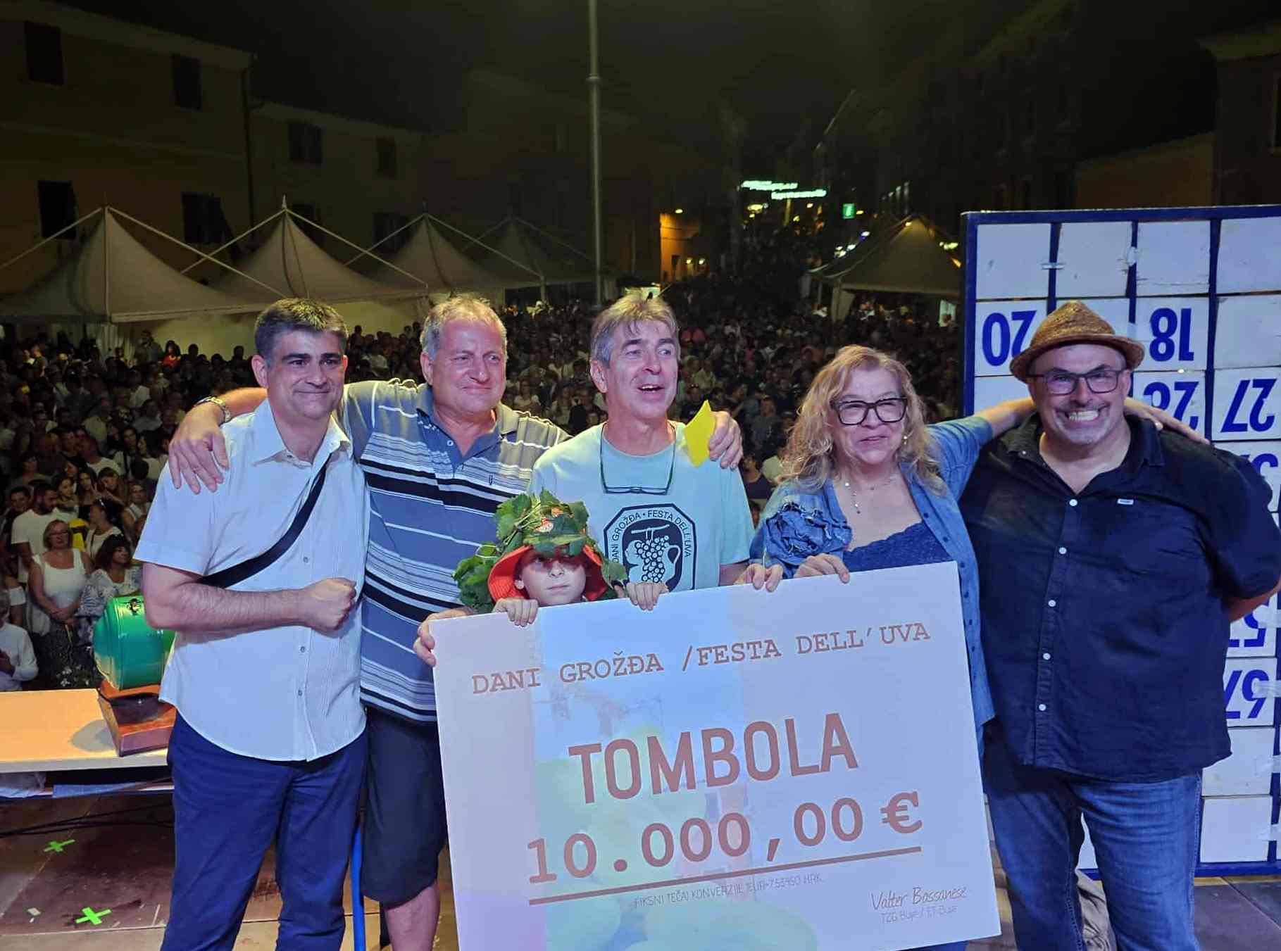 Kao i svake godine, vrhunac uzbuđenja donijela je velika nedjeljna tombola s bogatim nagradnim fondom. Sreća se osmjehnula najsretnijima, a glavnu nagradu od 10.000 eura podijelili su Serđo Trento i Lionela Acquavita.